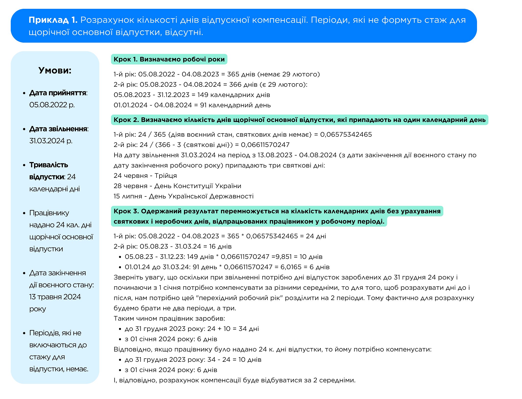 Алгоритм розрахунку кількості днів відпускної компенсації